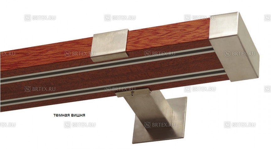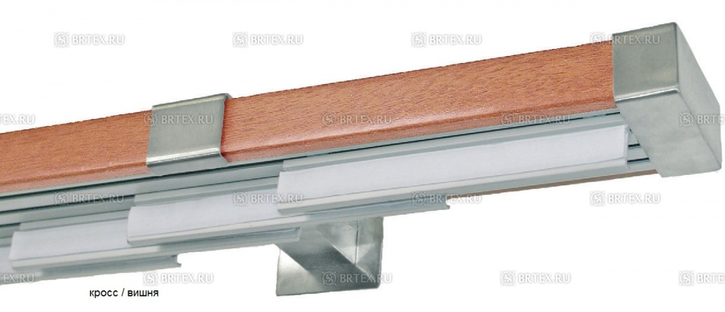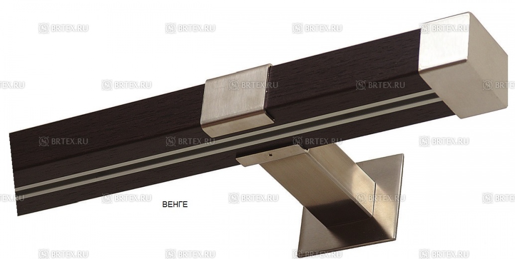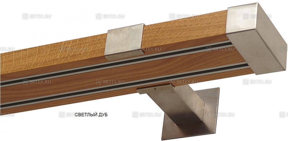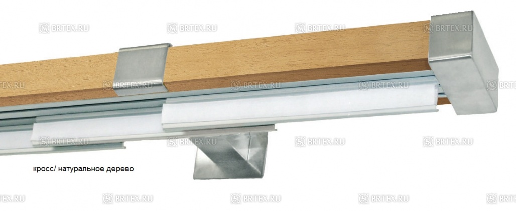 Алюминиевый профиль-рельс вмонтирован в декоративный деревянный профиль и составляет с ним единое целое.