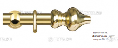 Карнизы «Империум» являются эксклюзивной коллекцией диаметром 30 мм. Комплектующие изготовлены из латуни с последующей обработкой и покрыты защитным слоем лака.