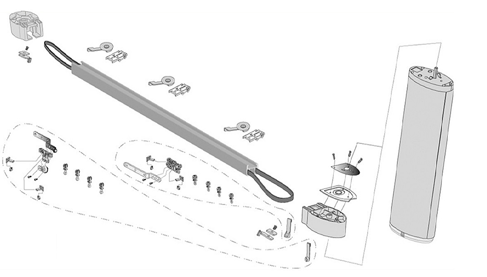 Схема комплектующих электрокарниза Glydea