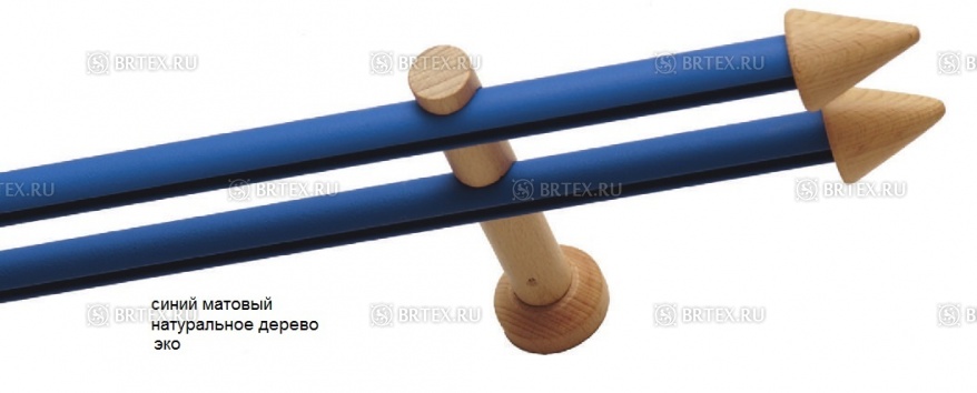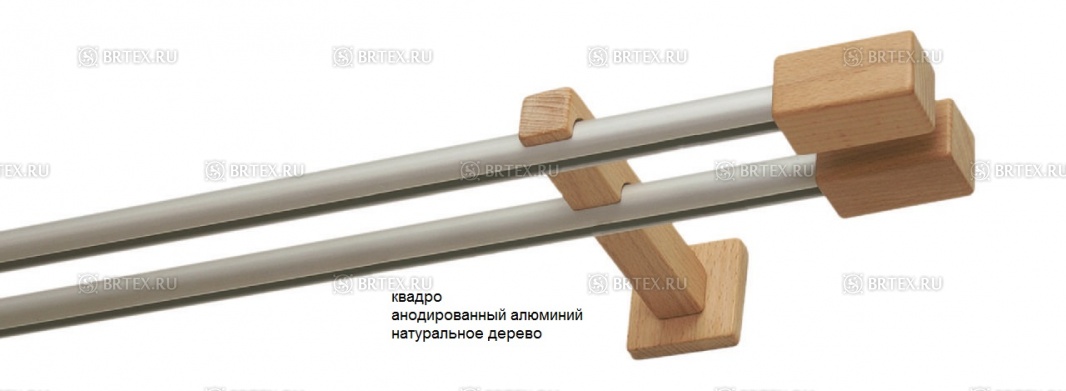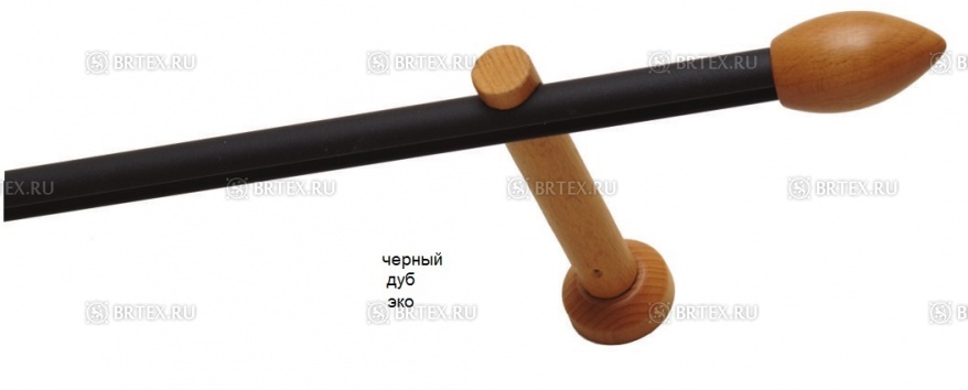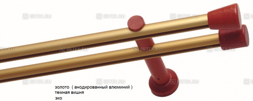 Круглый алюминиевый профиль D20 украшен деревянными наконечниками-заглушками и фиксируется на деревянных кронштейнах, однорядных или двухрядных.